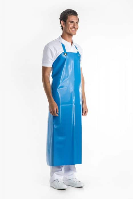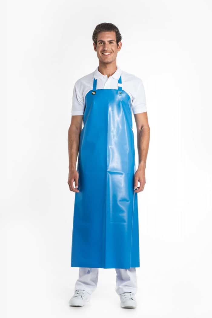 This apron has a good resistance to meat fats, blood and standard cleaning products. It’s easy to clean and does not harden. Can be shortened manually by cutting the length.