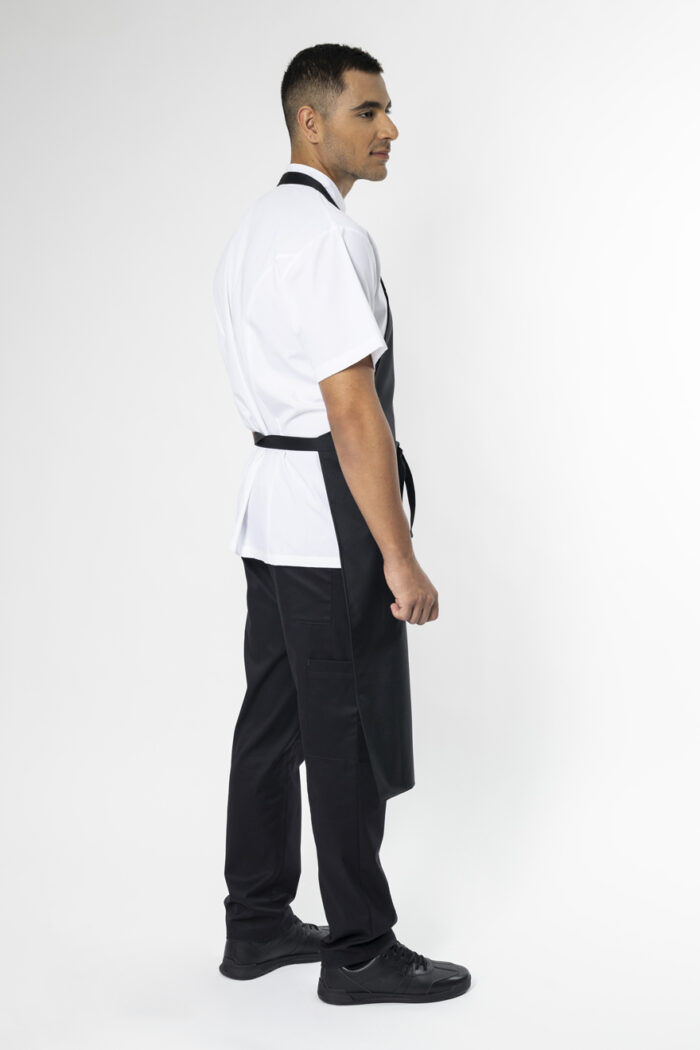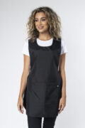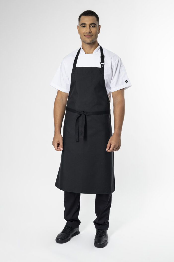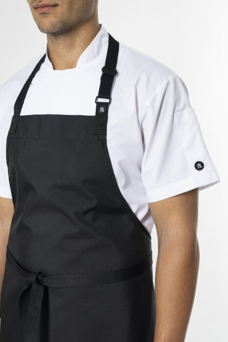 Adjustable neck strap, black buckle, cotton/acrylic webbing ties.