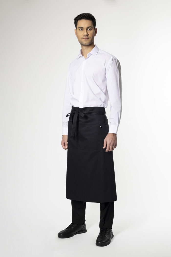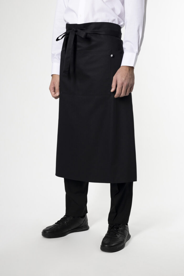 Two pockets, a pen pocket and a bottle opener pocket. Self fabric ties
