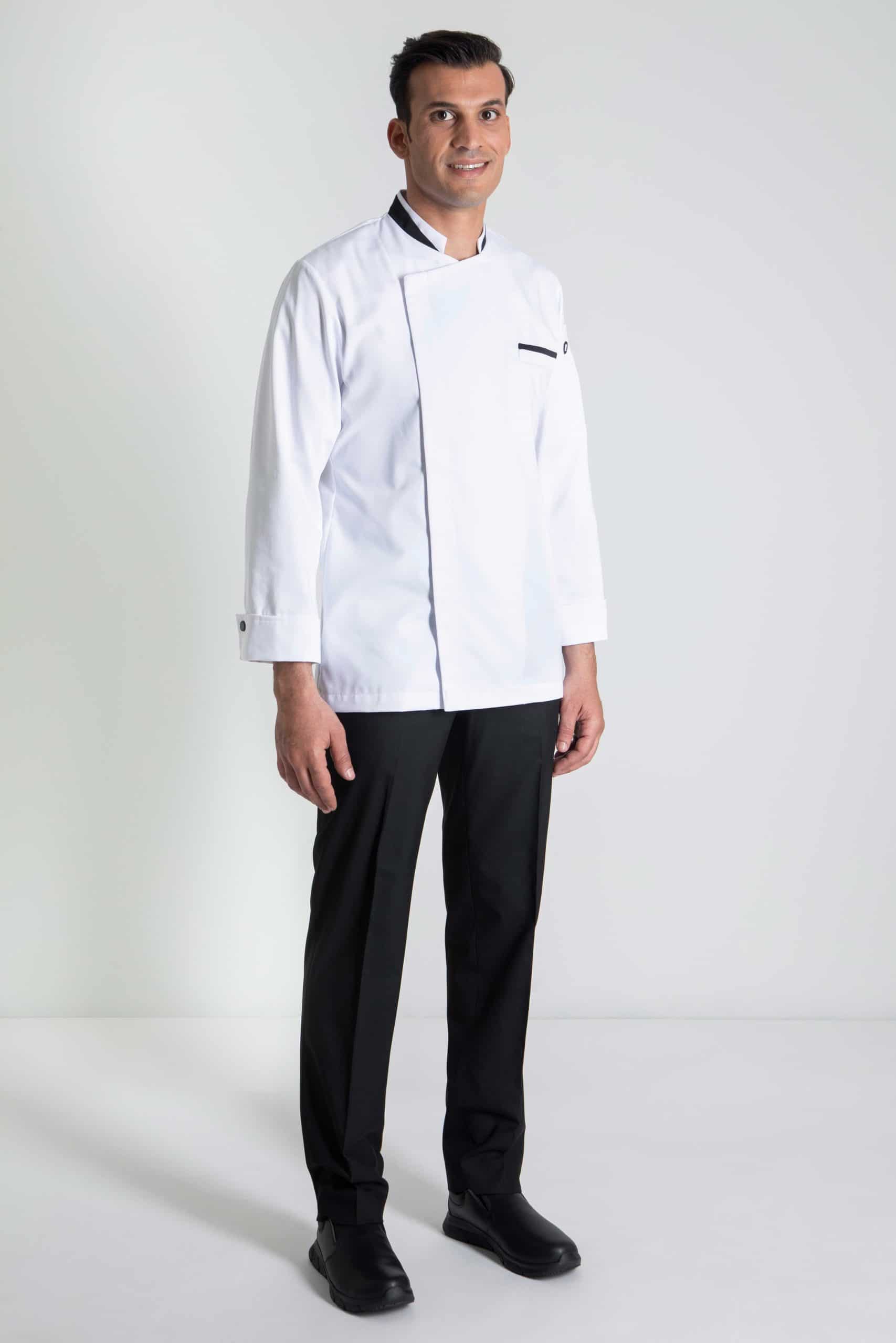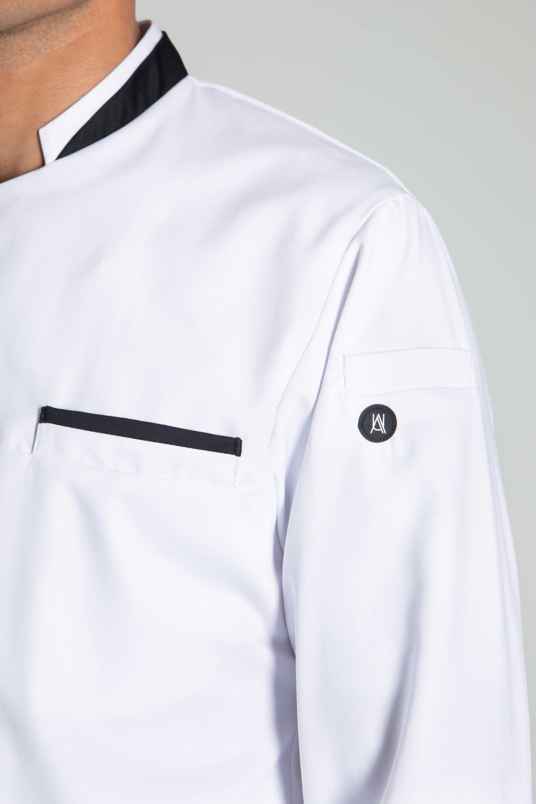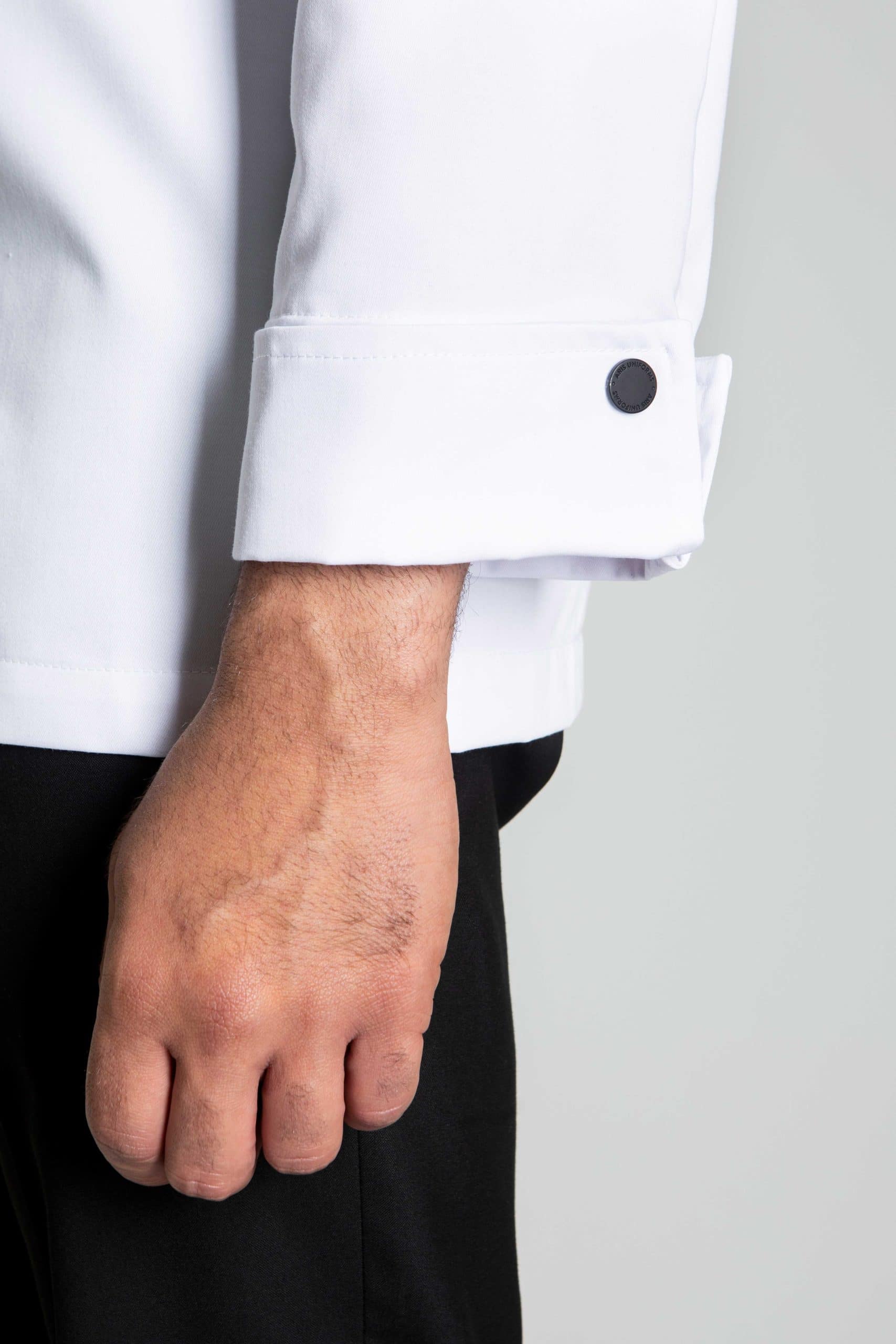 Long sleeve, turn back cuffs with matt black snap button fastening. Sleeve pocket, chest pocket, contrast at collar and chest pocket.