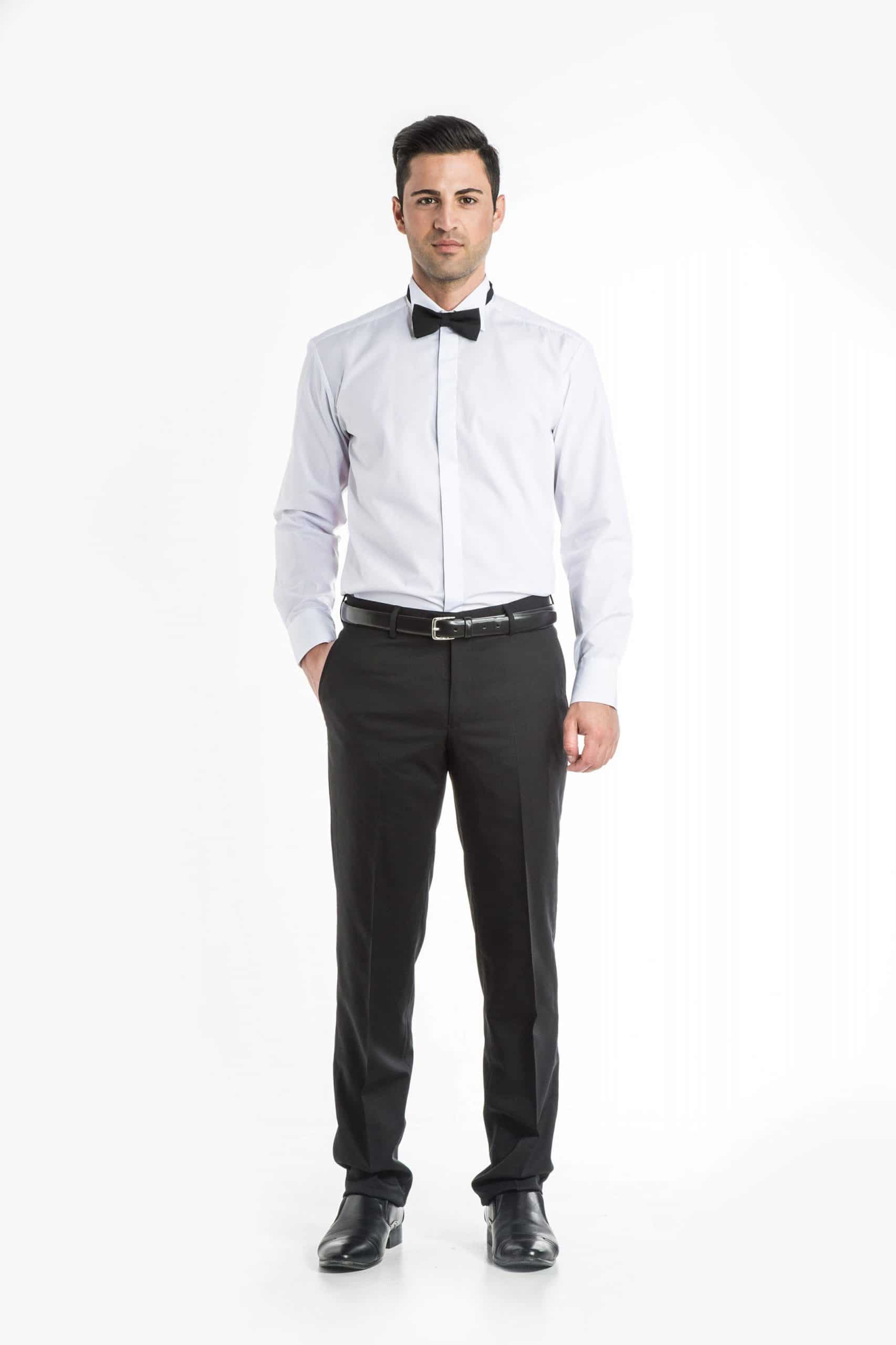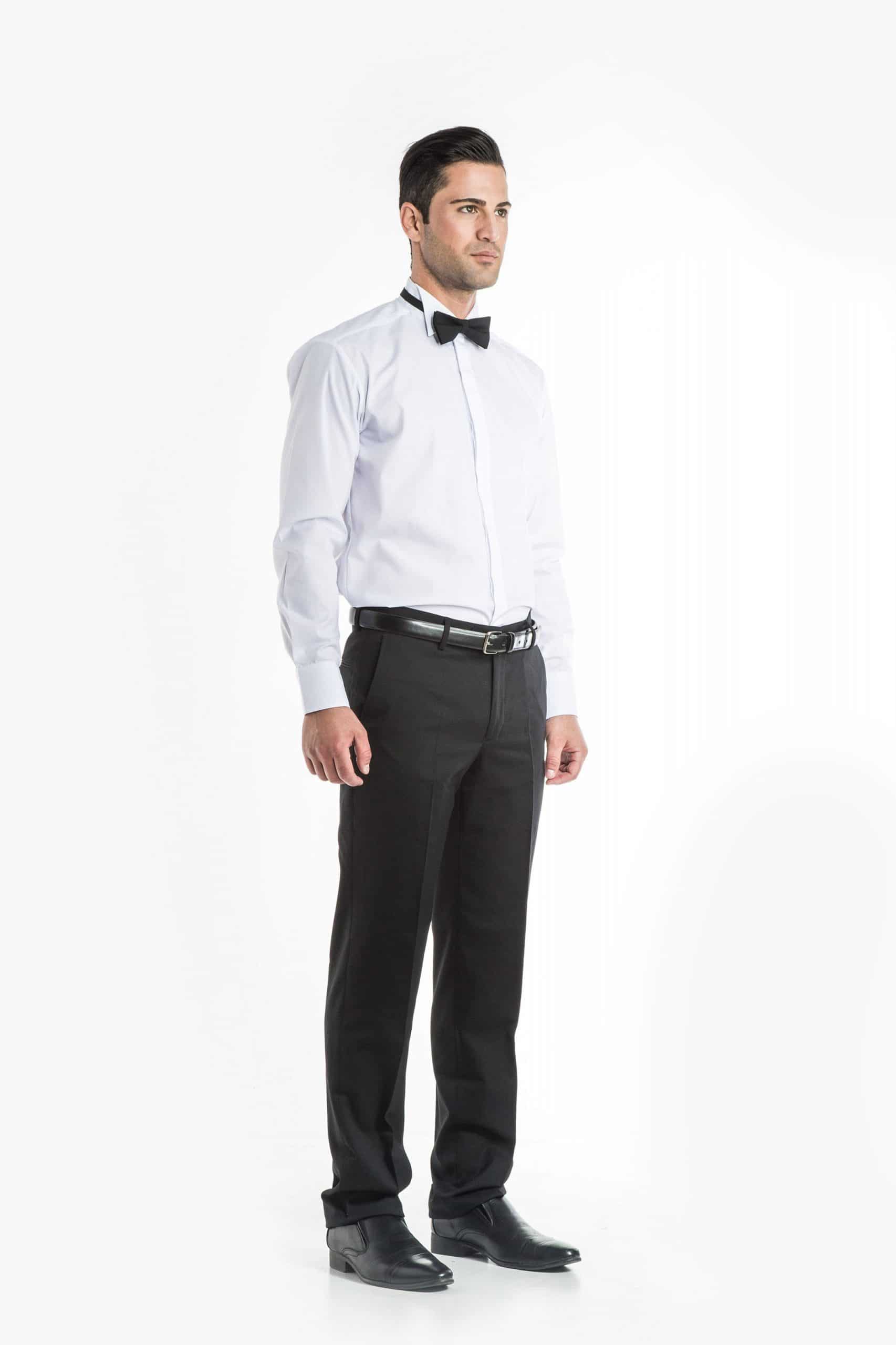Long sleeve, wing collar.